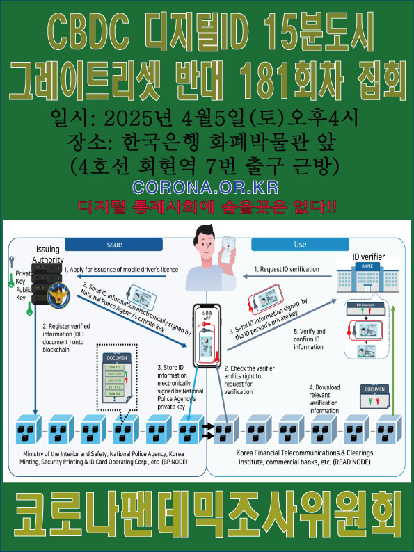 <코로나팬데믹조사위원회, CBDC 15분도시 디지털ID 그레이트 리셋 반대 181회차 시위>