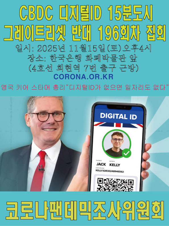 <코로나팬데믹조사위원회, CBDC 15분도시 디지털ID 그레이트 리셋 반대 196회차 시위>