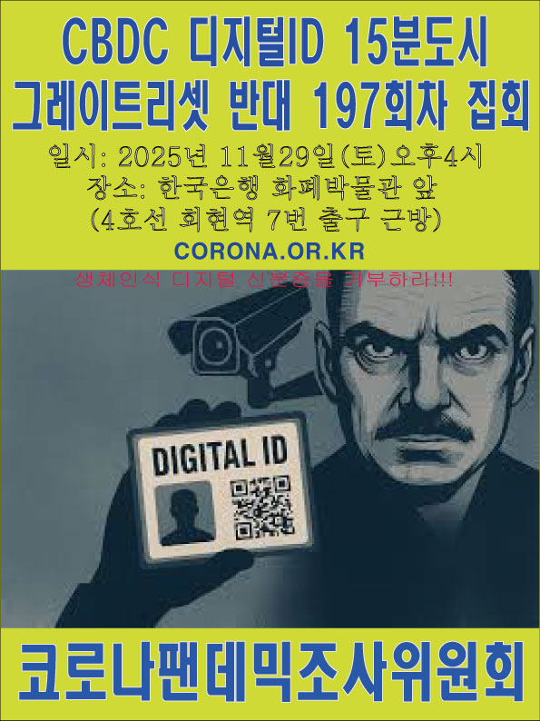 <코로나팬데믹조사위원회, CBDC 15분도시 디지털ID 그레이트 리셋 반대 197회차 시위>